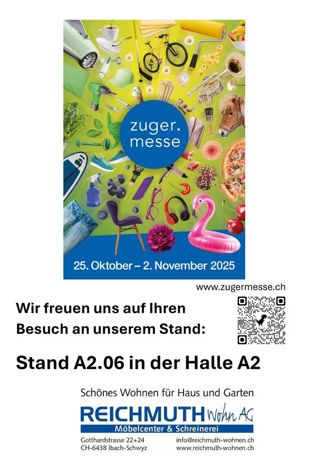 Besuchen Sie uns aber an der Zugermesse, Stand A2.06, Halle A2 .