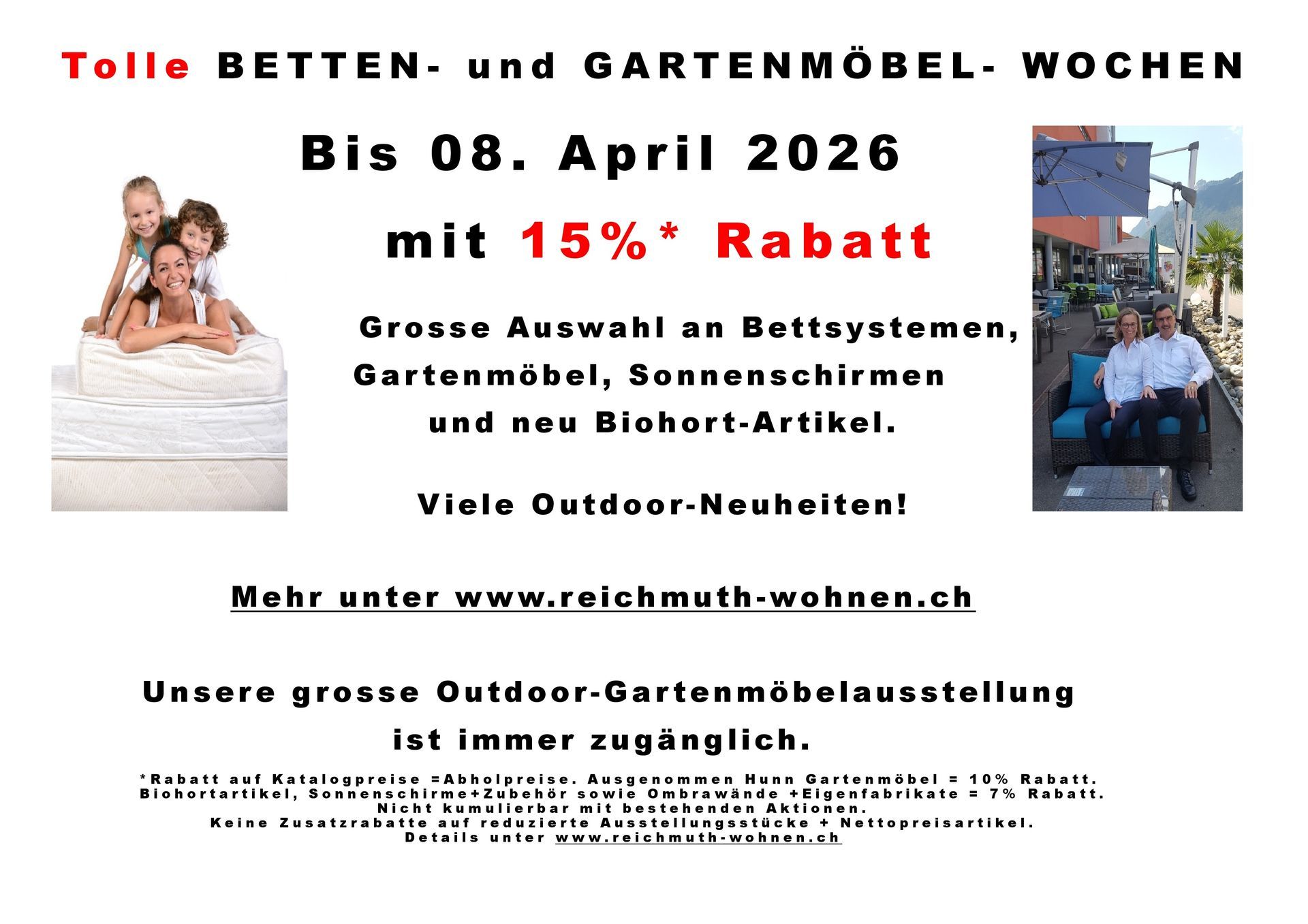 Die Reichmuth Wohn AG ist Ihr Möbelcenter und Ihre Schreinerei in Ibach-Schwyz und bietet Ihnen für jeden Raum und Garten und jeden Designwunsch die passende Auswahl an hochwertigen Handelsmöbeln, Eigenfabrikaten und Innenausbauprodukten.